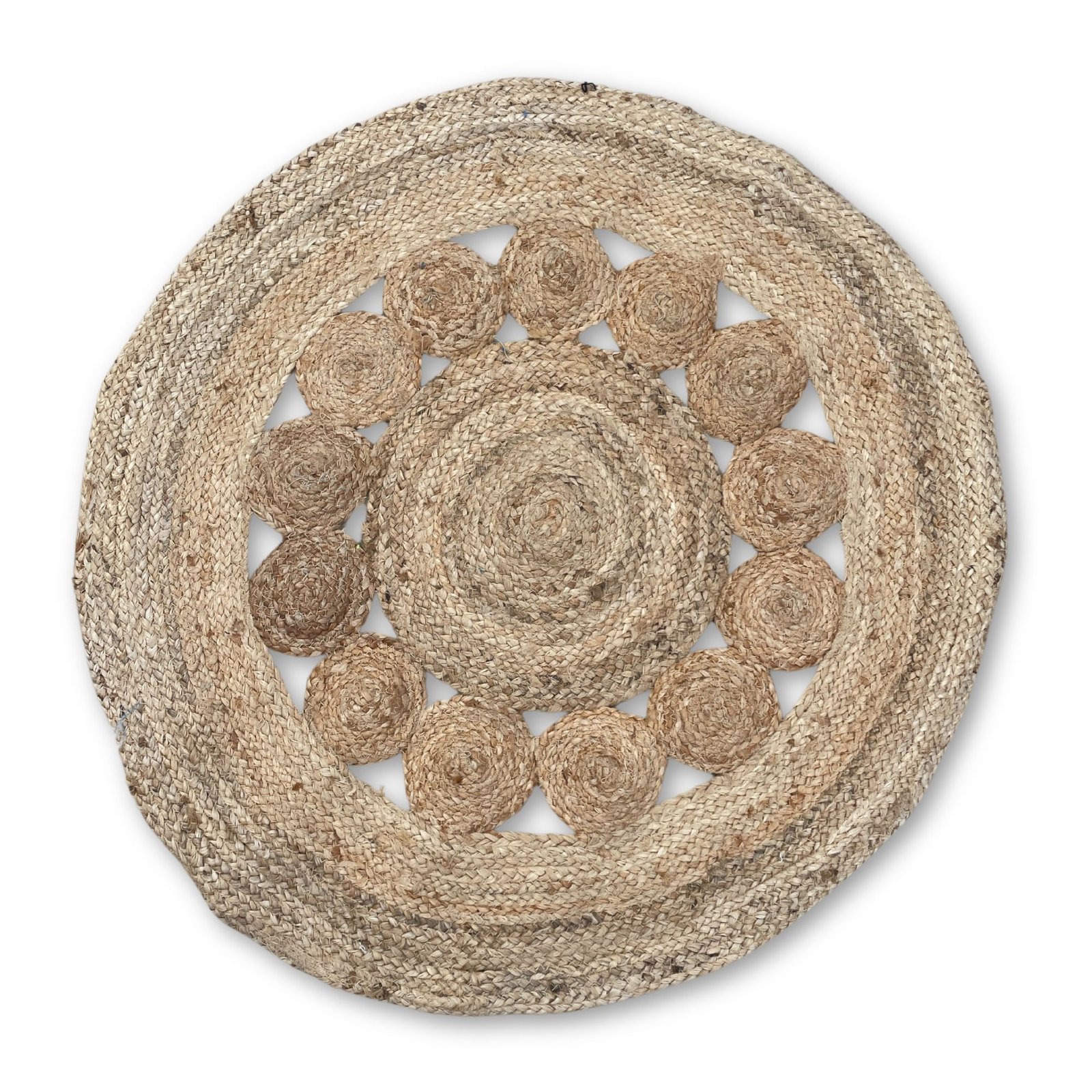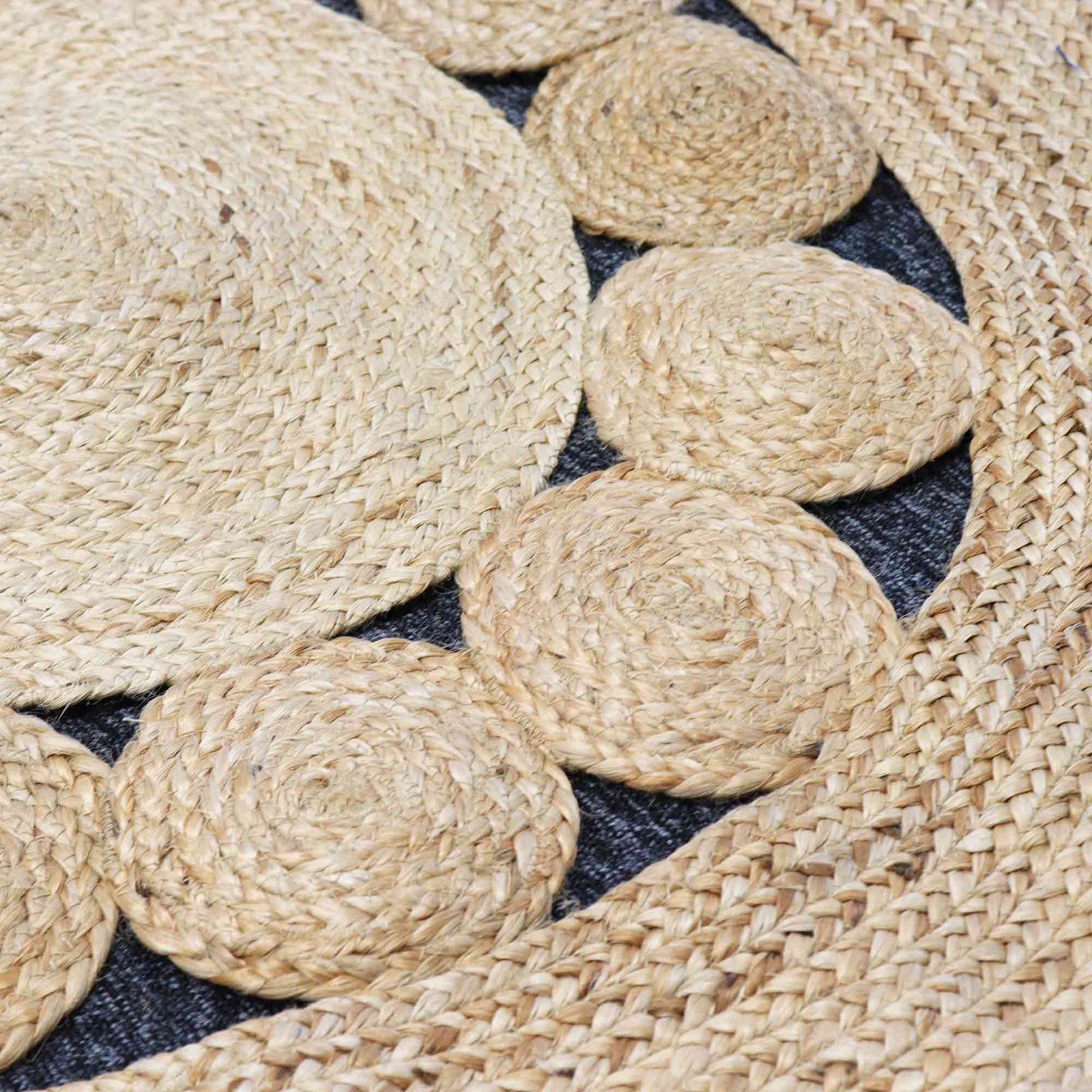 Alfombra redonda de yute suave círculos interiores 90cm