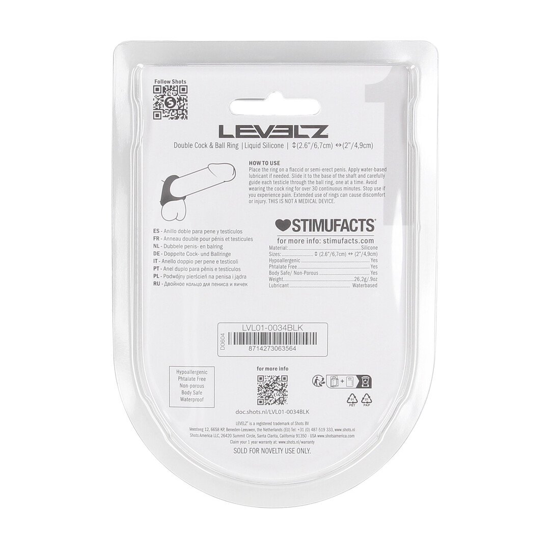Lock in lasting pleasure with this dual-action cock ball ring from the LEVELZ collection. Designed to encircle both shaft and scrotum, it enhances firmness while delivering a satisfying stretch and pressure. Crafted from smooth, body-safe silicone and packaged in a sleek clamshell, this non-vibrating essential is built for comfort, control, and a more intense experience.