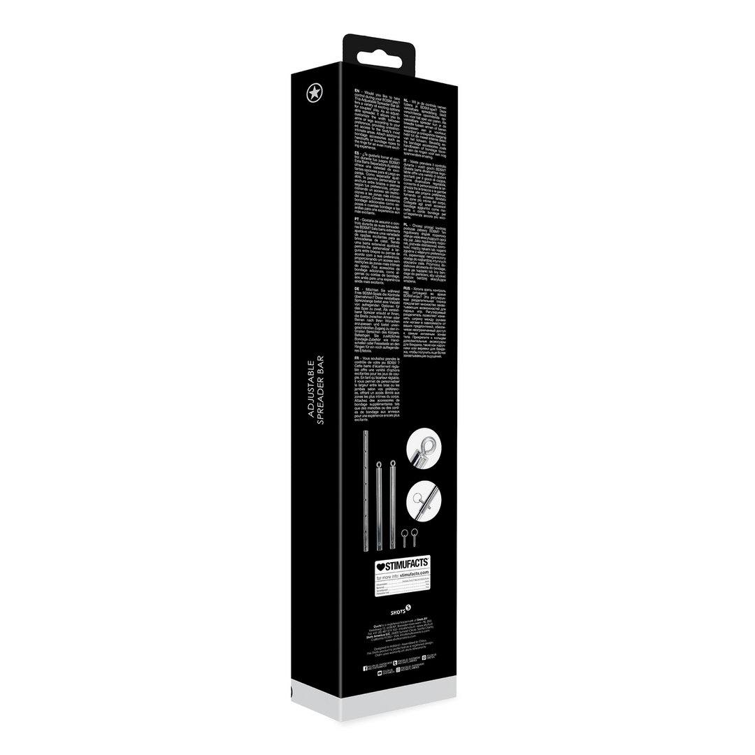¿Te gustaría tomar el control durante tus juegos BDSM? Esta Barra Separadora Ajustable ofrece una variedad de excitantes opciones para el juego en pareja. Como separador ajustable, te permite personalizar la anchura entre brazos o piernas según tus preferencias, proporcionando un acceso sin restricciones a las zonas más íntimas del cuerpo. Conecta accesorios bondage adicionales como esposas o cuerdas bondage a las anillas para una experiencia aún más excitante.