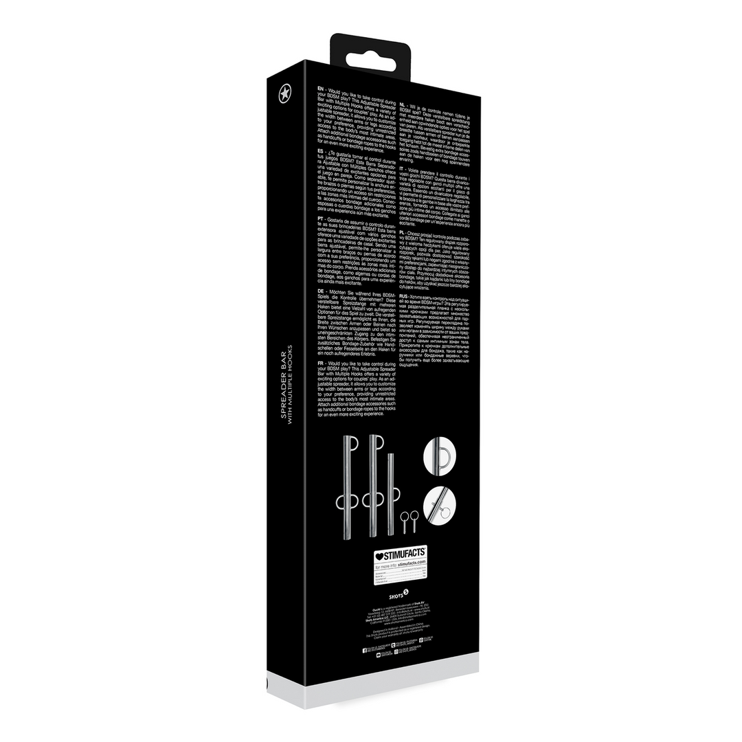 ¿Te gustaría tomar el control durante tus juegos BDSM? Esta Barra Separadora Ajustable con Múltiples Ganchos ofrece una variedad de excitantes opciones para el juego en pareja. Como separador ajustable, te permite personalizar la anchura entre brazos o piernas según tus preferencias, proporcionando un acceso sin restricciones a las zonas más íntimas del cuerpo. Conecta accesorios bondage adicionales como esposas o cuerdas bondage a los ganchos para una experiencia aún más excitante.