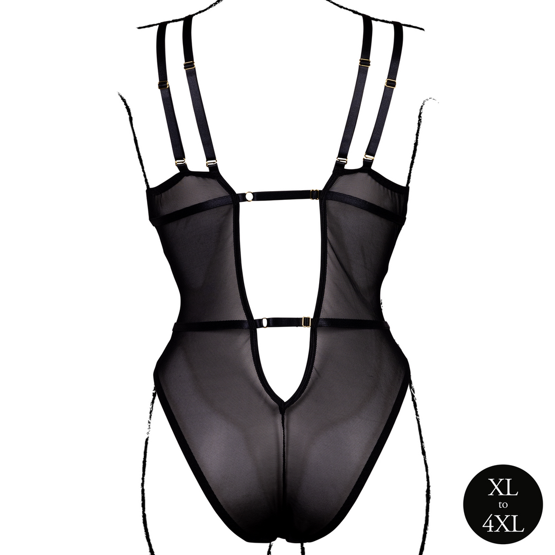 Body de encaje inalámbrico con reguladores ajustables – Tallas grandes – Negro