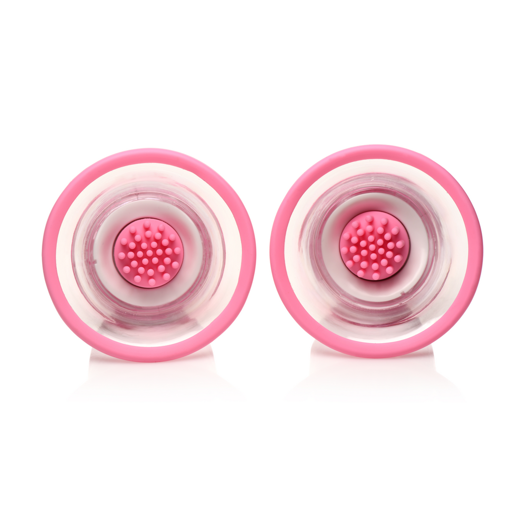 Para aquellos que desean ampliar el potencial de excitación a partir de la estimulación del pezón, o para quienes aman la atención constante en sus pezones y areolas, ¡estos succionadores de pezón de silicona rotativos son para ti! Cada una de las copas se sujeta mediante succión, ¡así que son manos libres! Una vez colocados, presiona el botón y disfruta de la silicona premium, libre de ftalatos, suave como la seda mientras rota alrededor de tus pezones. Viene con un conjunto de dos accesorios diferentes. Uno de los accesorios tiene puntas largas y delgadas que rodean el pezón y estimulan los lados del pezón y la areola. El otro conjunto tiene puntas más cortas que estimulan directamente la parte superior del pezón. Clasificado como IPX5 a prueba de agua, es resistente a salpicaduras y puede manejar chorros de baja presión. No sumerjas bajo el agua. Utiliza solo . Para recargar, utiliza el cable de carga USB proporcionado. ¡Muchos estudios sexys han demostrado que la estimulación del pezón es excitante, pero solo tienes tantas manos! Libera tus manos para tocar otras zonas erógenas colocando estos estimuladores de pezón con ventosas y dejándolos mantenerte excitado y en juego mientras construyes un Gran O con la combinación de estos succionadores y un , penetración o algo de atención oral. ¡Disfruta usando ambos accesorios como desees para sacar el máximo provecho de estos succionadores sexys! Aprieta las empuñaduras de silicona en los lados del succionador y coloca el succionador sobre el pezón. Una vez que el succionador esté en posición, suelta las empuñaduras de silicona para crear succión y mantener el succionador en su lugar. Presiona y mantén el botón en la parte superior del succionador durante 3 segundos para encender/apagar la rotación. Presiona repetidamente para ciclar a través de 10 patrones de rotación. Para cambiar los accesorios de silicona, agarra firmemente el accesorio y tira mientras lo mueves de un lado a otro. El accesorio saldrá y el accesorio puede ser presionado en su lugar. Medidas: Longitud total: 3.3 pulgadas. Diámetro de la abertura de la copa: 3 pulgadas. Profundidad de la copa: 1.3 pulgadas. Materiales: Silicona, plástico ABS. Color: Rosa. Nota: No sumerjas bajo el agua. Clasificado IPX5 a prueba de agua y solo puede manejar chorros de baja presión. Utiliza solo . Características clave: Sujeción por succión: Las copas se sujetan mediante succión. Presiona los lados para crear succión y suelta para mantenerlo en su lugar. Estimuladores de pezón rotativos: ¡Disfruta de las suaves puntas estimulantes mientras rotan sobre tus pezones! Dos conjuntos de accesorios: Elige entre las puntas que frotan contra la parte superior de tu pezón o las que rotan alrededor del pezón y estimulan la areola. Silicona premium: Hecho de silicona premium. Es libre de ftalatos, suave como la seda y muy flexible. ¡Clasificado también como IPX5 a prueba de salpicaduras!