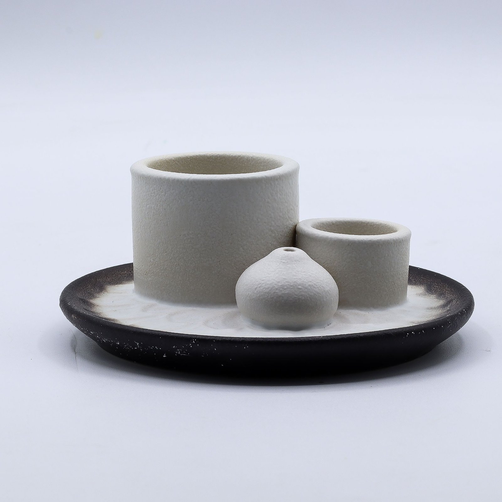 Soporte cerámico para Palo Santo e Incienso – Mandala – Blanco y Gris